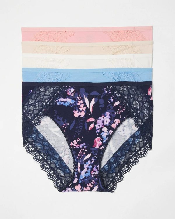 Beautiful lace accents give our Embraceable® Enchanting Lace high-leg briefs a luxurious design detail you’ll love. The high-leg design elongates your legs and defines your waist for a flattering look, and the ultra-light fabric gives you soft, breathable comfort all day. The multi-pack includes five pairs of panties.