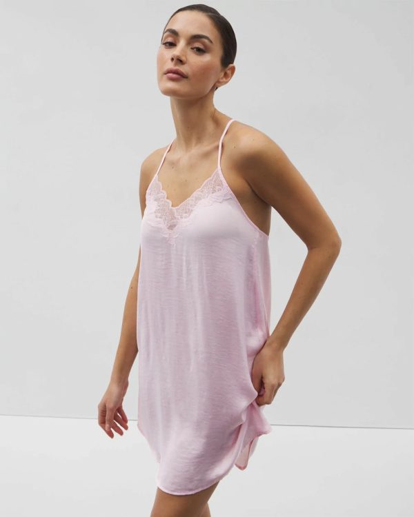 Dreams are sweeter in satin—our soft new crinkle satin chemise is trimmed in lace and the perfect sleepwear to complete your sleep collection.