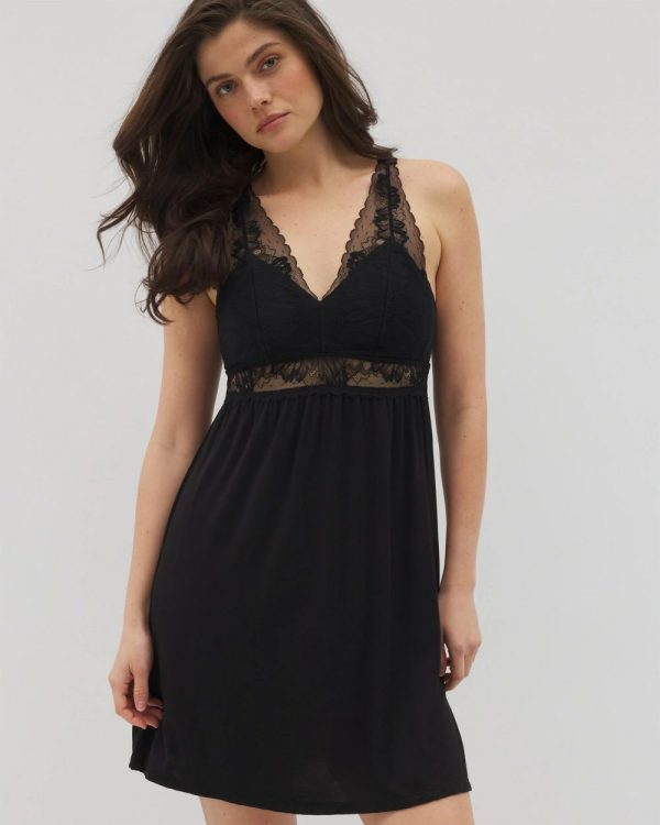 Over 20 million Cool Nights® PJs sold. Get your beauty rest in a gorgeous lace chemise with the comfort of a built-in shelf bra.