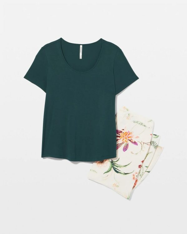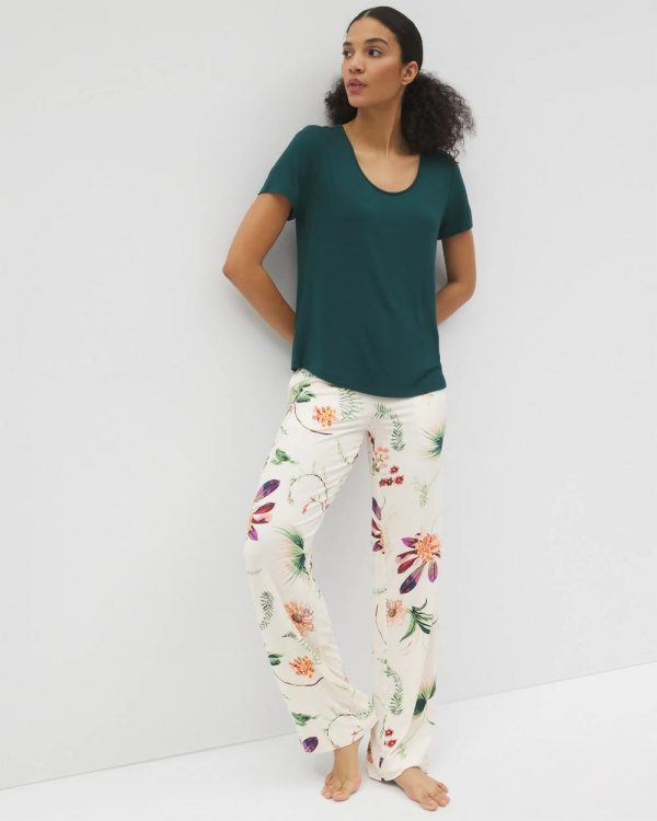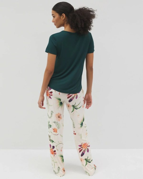 Pajama Sets | Women Soma Packaged Short-Sleeve Pant Pajama Set Paradise Plumes Champagne