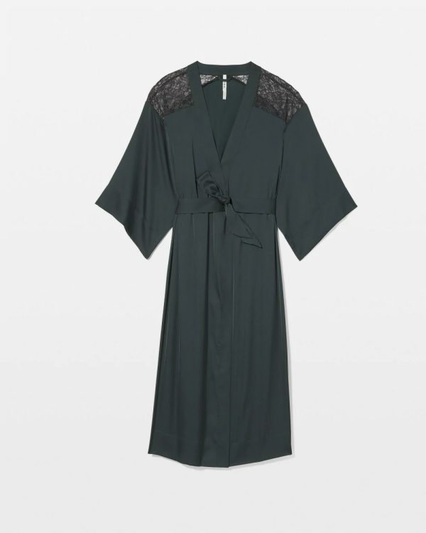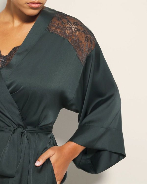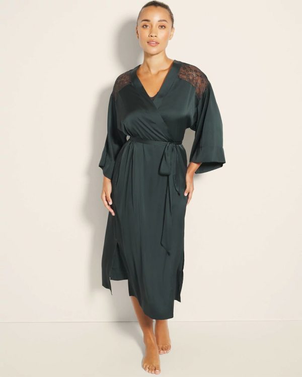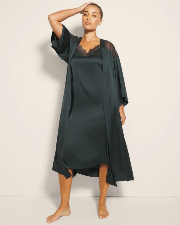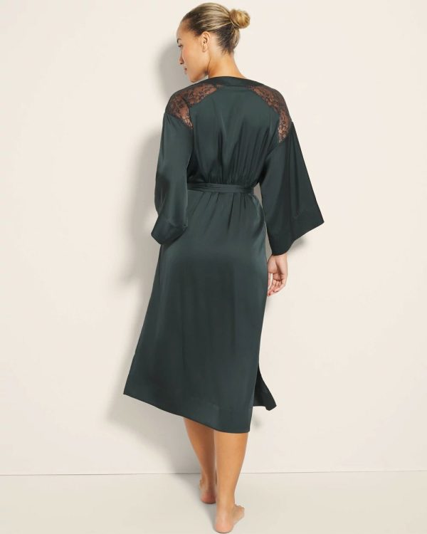 Nothing says luxury like a long, satin robe. Complete with sheer lace detailing on the shoulders and slits on either side for ease of movement, this robe is the most elegant way to lay around. Slip it on over our matching satin lace gown before bed, or drape it over yourself after a bath.