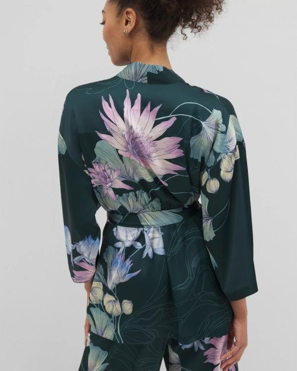 - Short wrap silhouette—intended for layering with PJ bottoms