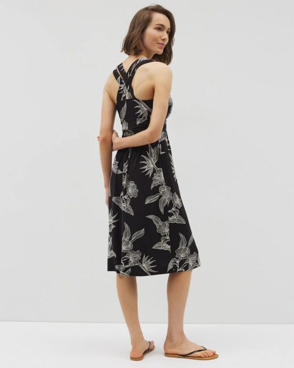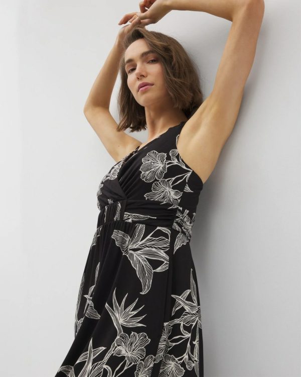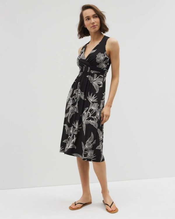 Short Dresses | Women Soma Cross Back Strap Bra Dress Plumeria Blooms Grand Blk