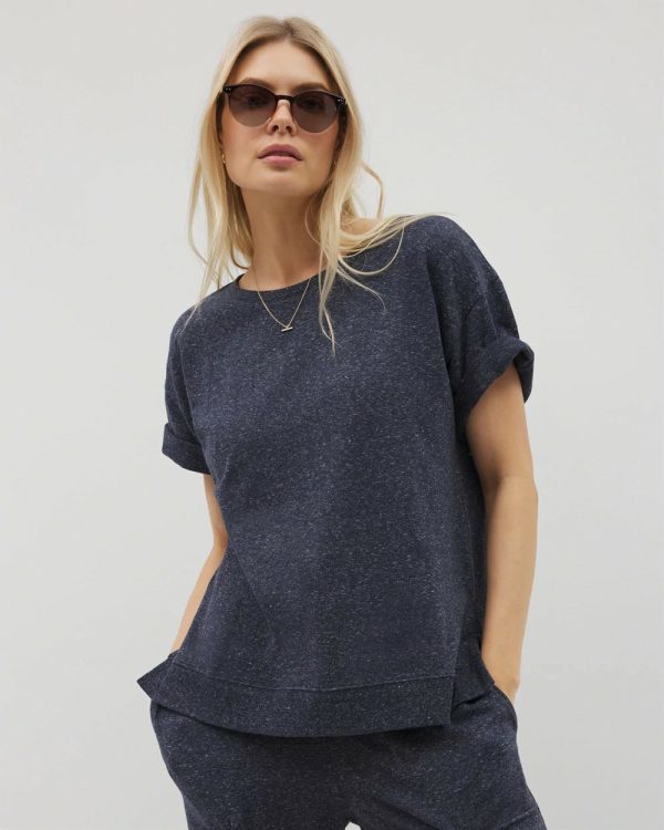 Tops | Women Soma Essential Terry Relaxed Short Sleeve Top Heather Eclipse